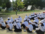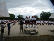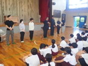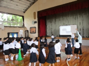 他の学校に転勤された6名の先生方とのお別れの式を行いました。最後は先生方と握手をしたり、タッチをしたりして見送ることができました。