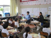 楽器の紹介やダンスなどもあり、演奏会を楽しむことができました。給食時間には、それぞれの教室で普段の仕事の様子を教えてもらいながら昼食を食べて頂きました。