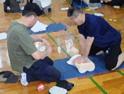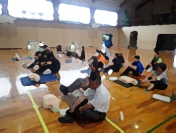 保護者の方にも参加して頂き、総社消防署の方に、心臓マッサージやAEDの使い方を教わりました。事故の危険が増える水泳学習に万全の準備で取り組みたいと思います。