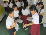 生活科の学習で秋の実を使っておもちゃを作り、三須幼稚園、服部幼稚園、ひかり保育園の園児を招待して遊んでもらいました。園児に優しく接することができました。