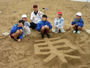 研修所の部屋で弁当を食べた後、カッパを着てカッター研修をしました。その後、砂の芸術を楽しみ、夜は拾った貝殻でフォトフレーム作りをしました。夜は疲れてみんなぐっすり寝ていました。